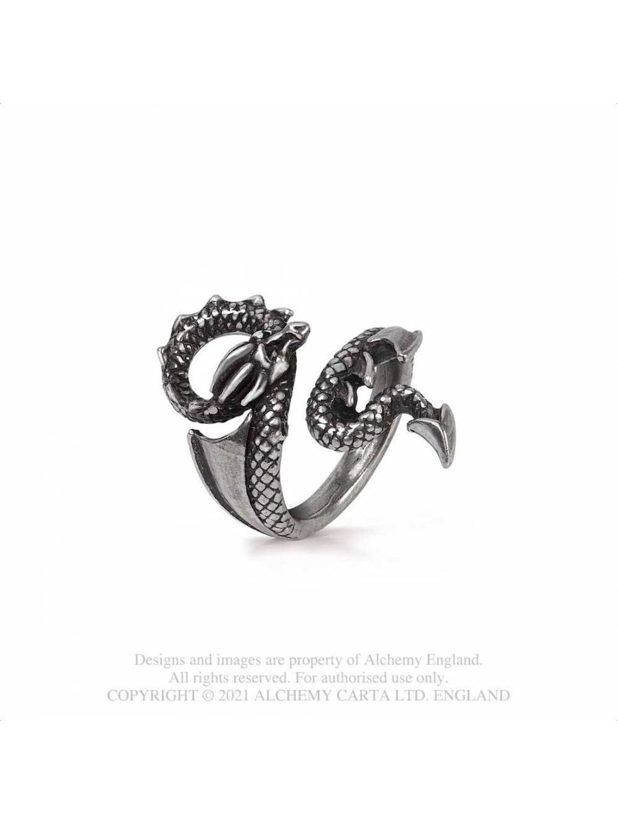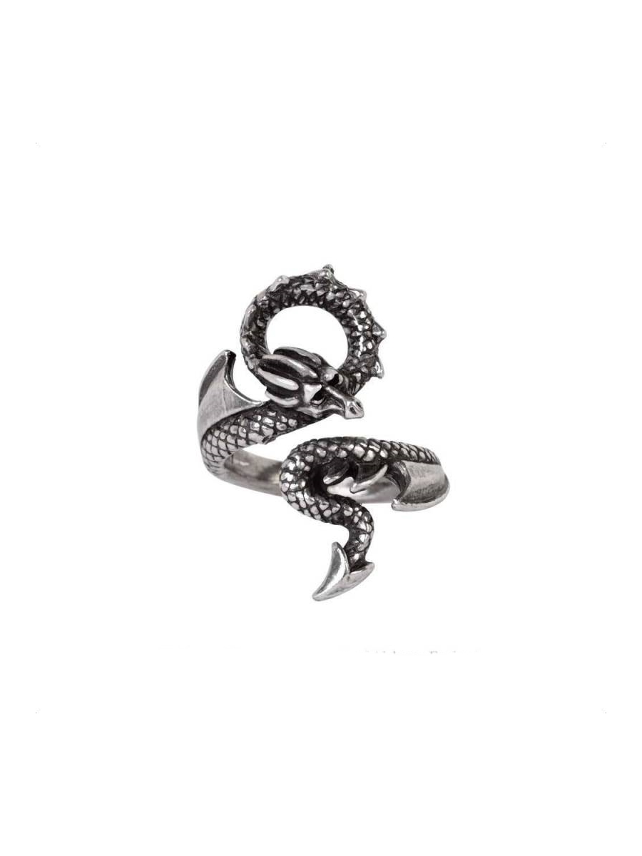 Une superbe bague dragon en étain poli fabriquée à la main en Angleterre