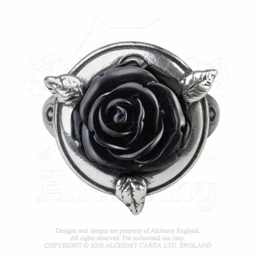 Sensationnelle bague poison de style gothique en forme de rose noire, le sommet de la bague pivote afin de découvrir le compartiment secret qui renferme le poison…