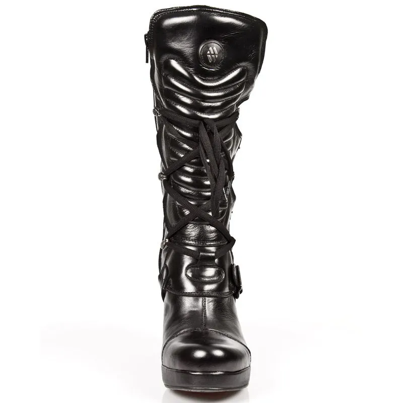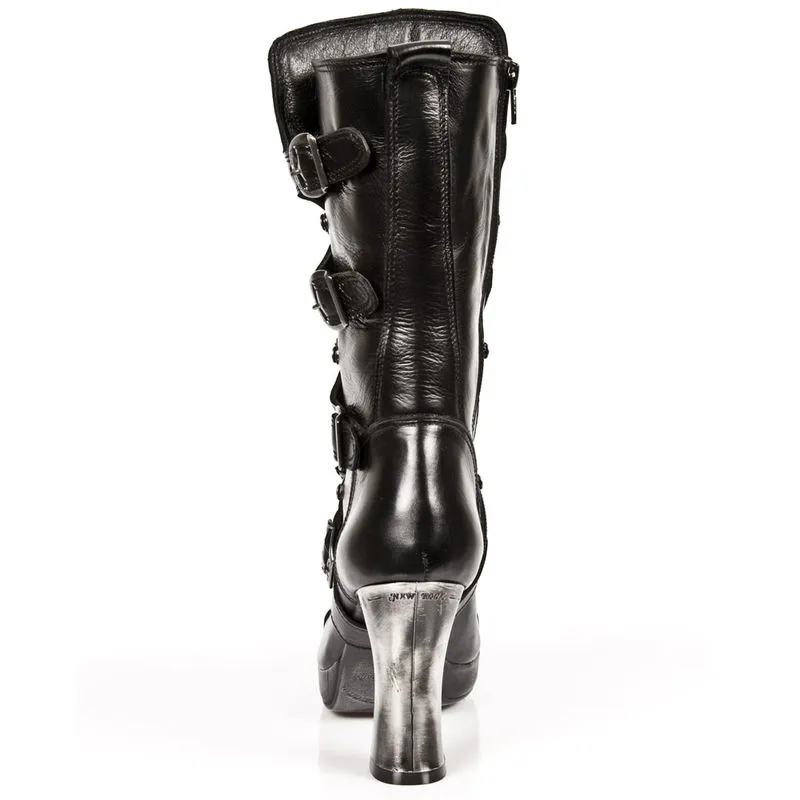 Ces bottes de style gothique possèdent 4 sangles réglables, une fermeture éclair intérieur, un laçage frontal et surtout un beau talon en métal !