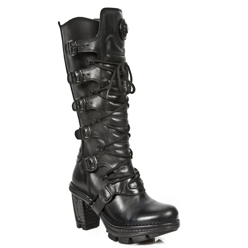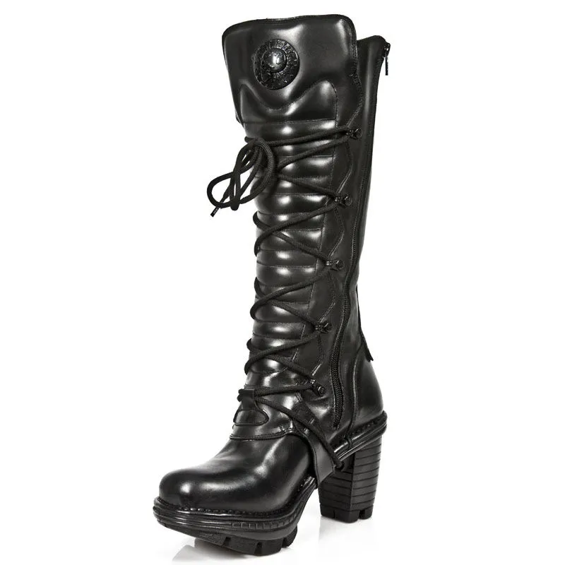 Grandes bottes en cuir noir dans le pur esprit gothique