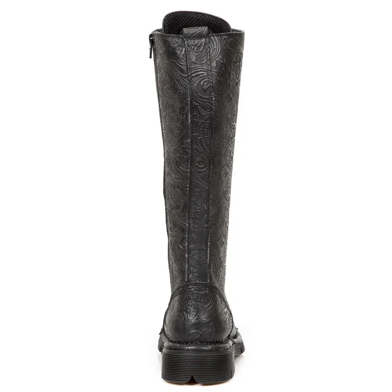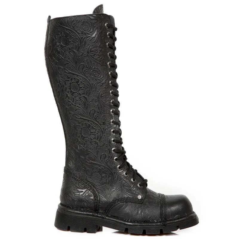 Ces rangers 19 trous sortent de l’ordinaire grâce à ce cuir “embossed” aux motifs baroques