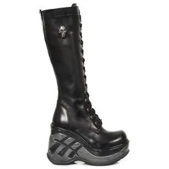 Un modèle phare de la marque, du 100% gothique avec ses semelles compensées, ses larges talons, sa petite tête de mort en métal