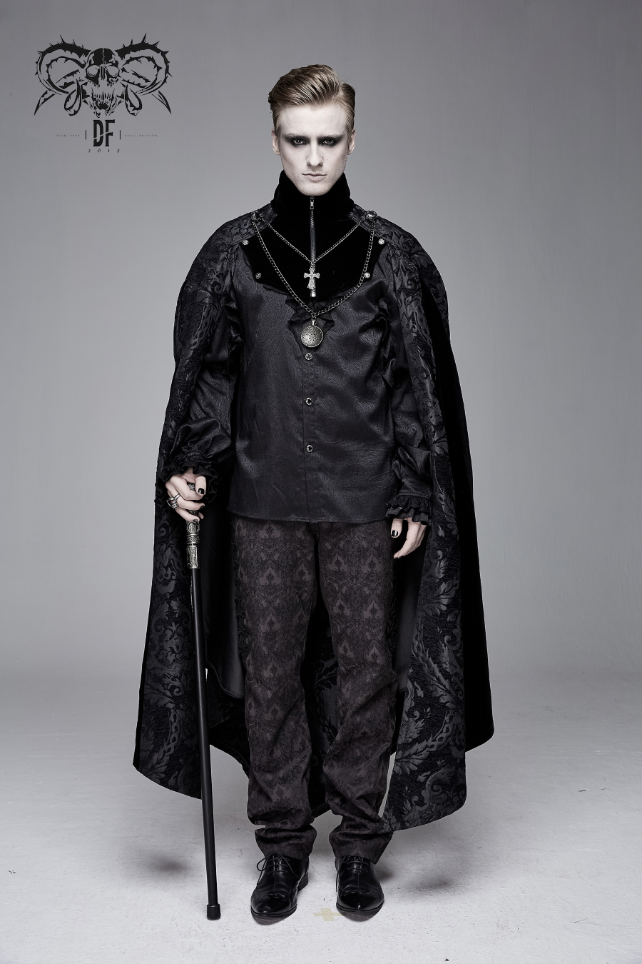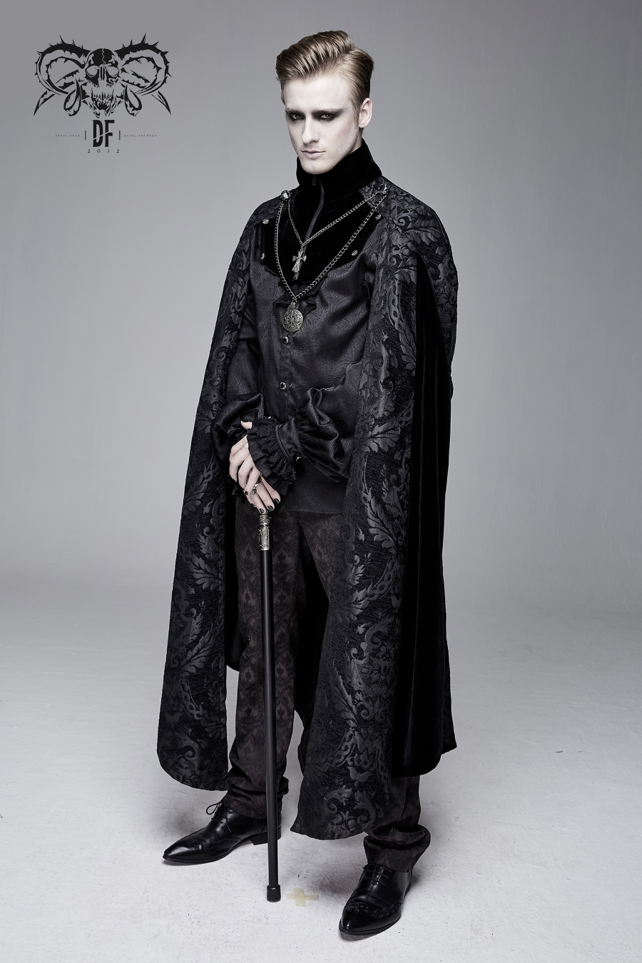 Bijoux amovibles montés sur une double chaîne avec une croix gothique et un cercle antique, vous pouvez les passer par les 2 gros boutons de décoration sur les épaules pour un super look comme sur nos photos