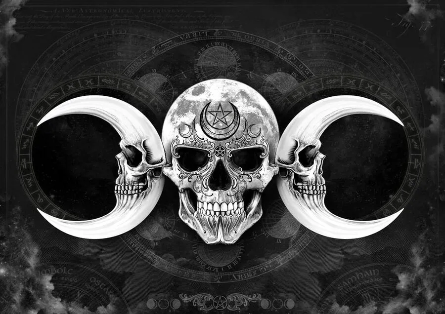 Le dessin signé Alchemy Gothic est représente les 3 phases de la lune mais sous forme de crâne