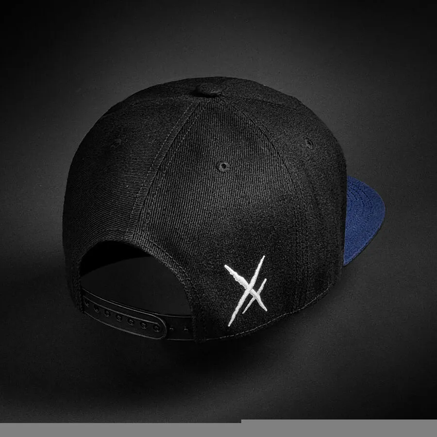 Belle casquette noire et bleue à visière plate signée Hyraw