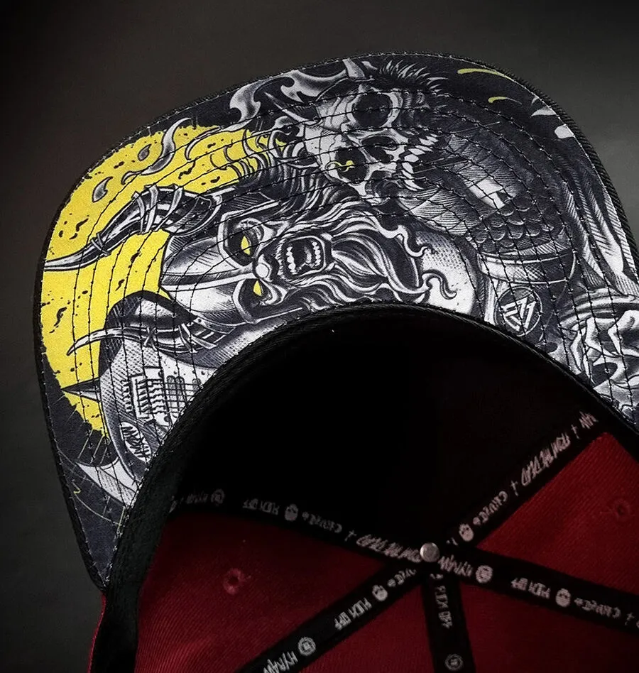 Belle casquette noire et bordeaux à visière plate signée Hyraw