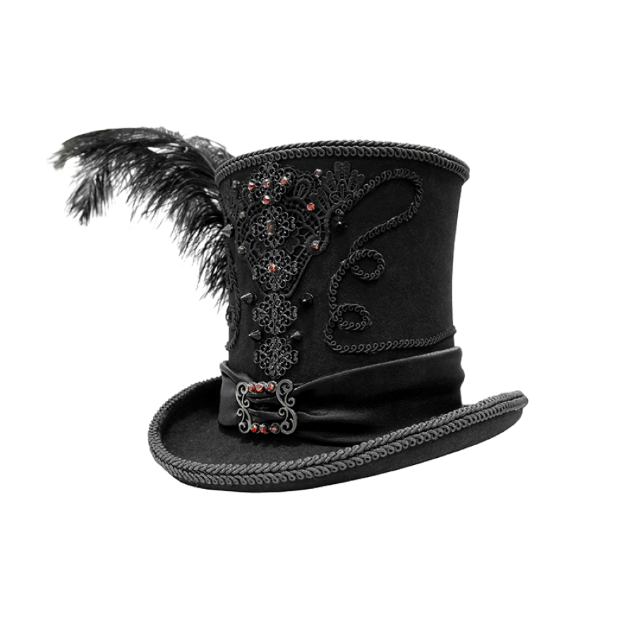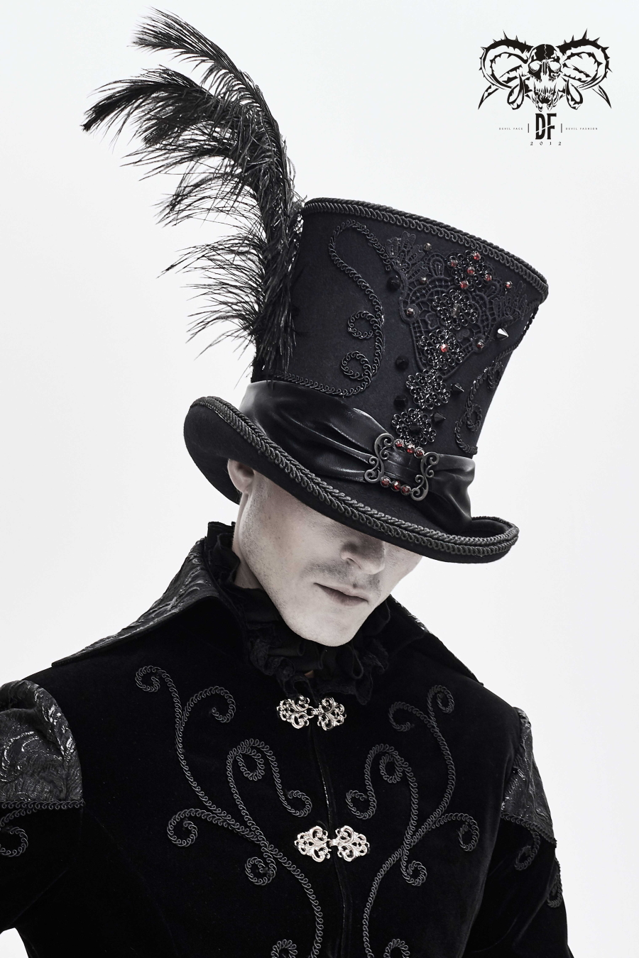 De grandes broderies accentuent le style gothique de ce haut de forme