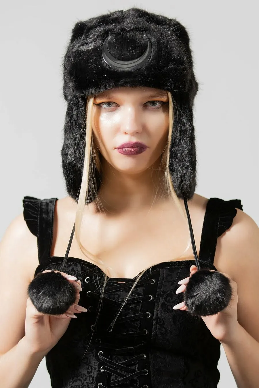 La chapka « Dark Side Of The Moon » par Killstar est fabriquée à partir de la fausse fourrure la plus luxueuse