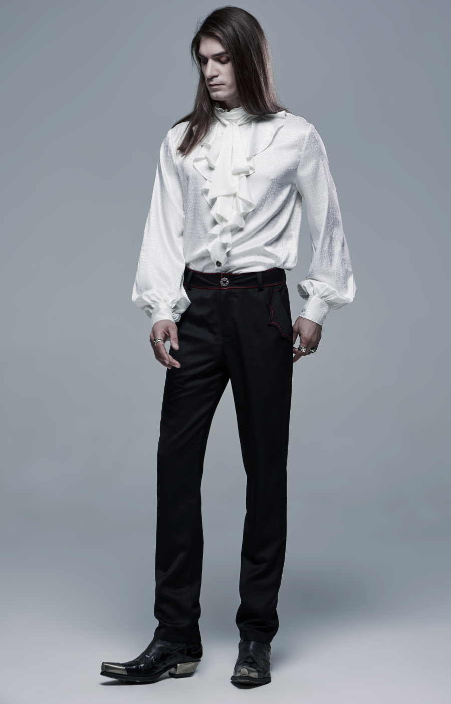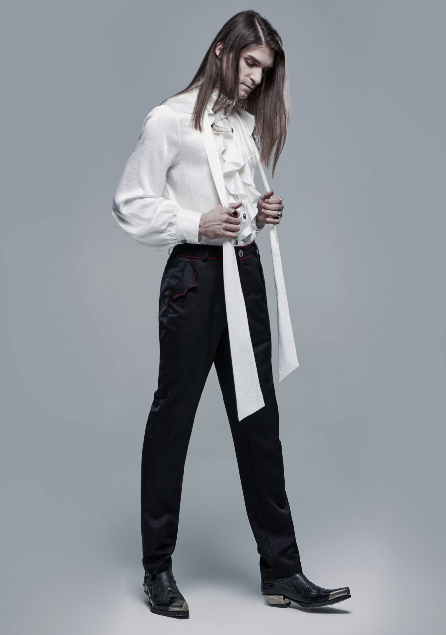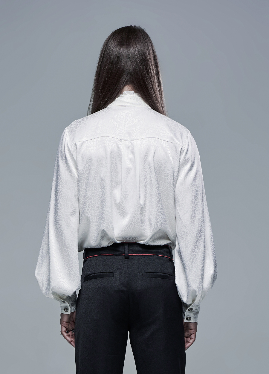Chemise vampire blanche en tissu jacquard satiné de très belle qualité avec motifs effet serpent & cachemire