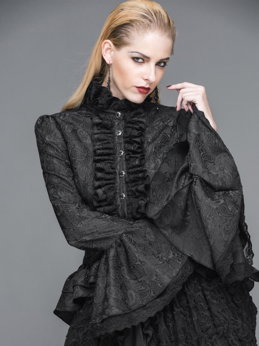 Si vous aimez le style gothique victorien, si vous cherchez un chemisier de grande classe au look incroyable vous allez adorer ce chemisier Devil Fashion, il est tout simplement somptueux !
