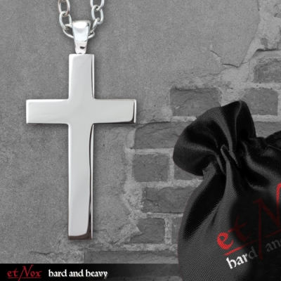 Croix gothique pleine en acier inoxydable poli vendue avec sa chaîne