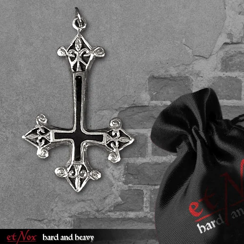 Belle croix inversée en acier inoxydable et onyx noir, elle est vendue avec son cordon de cuir régable