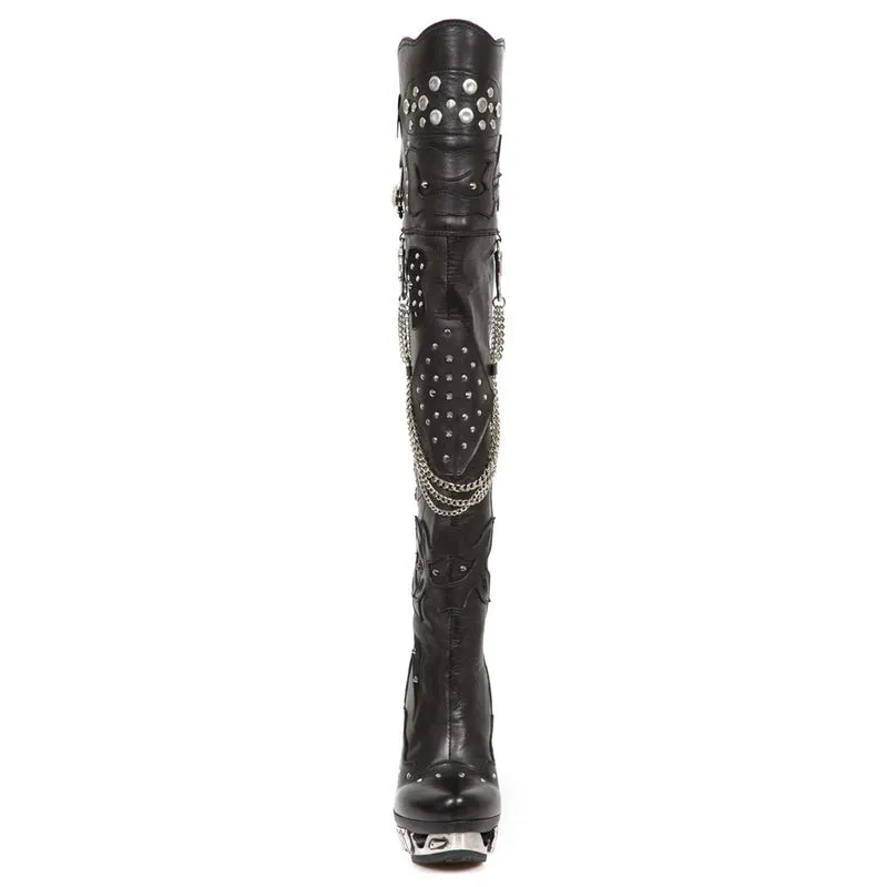 Grandes cuissardes en cuir haute qualité richement décorées de clous, rivets et autres épingles de nourrice