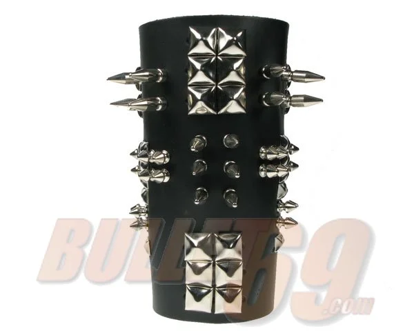 Terrifiant est le mot qui convient le mieux pour décrire cet avant bras.Taillé dans un cuir de bonne qualité, il est décoré de nombreux clous de toutes sortes.