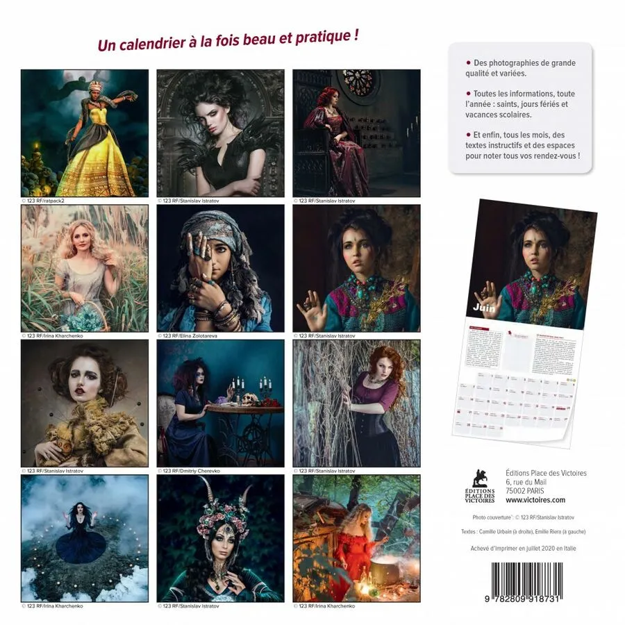 Calendrier mural au format 30×30 cm, à spirale métallique, facile à accrocher. 12 belles images à raison d’une par mois. Les saints, vacances scolaires par zone, jours fériés sont indiqués. Le calendrier est très pratique : à chaque journée sa case avec suffisamment de place pour noter des choses. Il y a également une grande case centrale où écrire. Les photos sont légendées de textes détaillés. Depuis 10 ans, les calendriers des éditions Place des Victoires accompagnent joliment et utilement le quotidien de nombreuses familles !