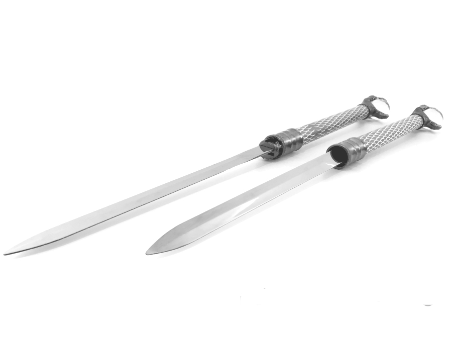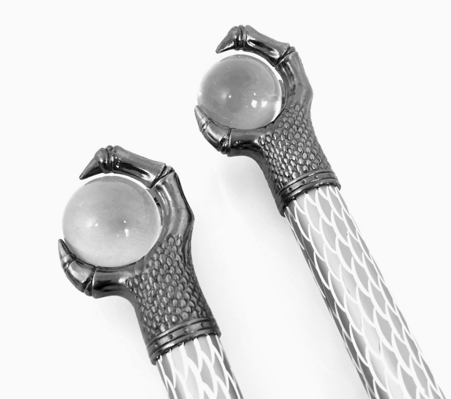 Griffes de Dragon au bout de chaque épée tenant une boule translucide