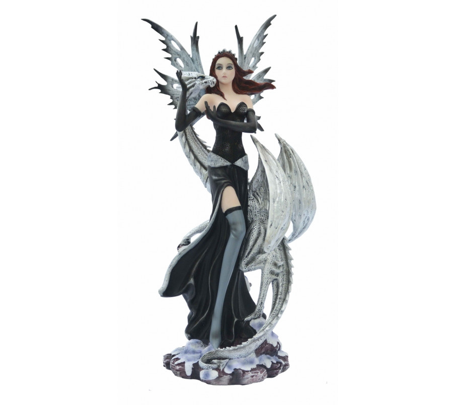 Superbe figurine de 27 cm représentant une fée gothique et son dragon