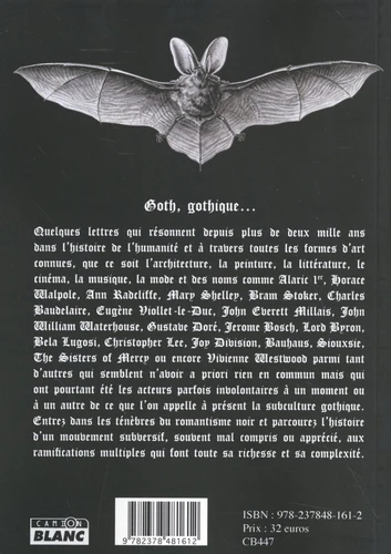 Quelques lettres qui résonnent depuis plus de deux mille ans dans l’histoire de l’humanité et à travers toutes les formes d’art connues, que ce soit l’architecture, la peinture, la littérature, le cinéma, la musique, la mode et des noms comme Alaric 1er, Horace Walpole, Ann Radcliffe, Mary Shelley, Bram Stoker, Charles Baudelaire, Eugène Viollet-le-Duc, John Everett Millais, John William Waterhouse, Gustave Doré, Jerome Bosch, Lord Byron, Bela Lugosi, Christopher Lee, Joy Division, Bauhaus, Siouxsie, The Sisters of Mercy ou encore Vivienne Westwood parmi tant d’autres qui semblent n’avoir a priori rien en commun mais qui ont pourtant été les acteurs parfois involontaires à un moment ou à un autre de ce que l’on appelle à présent la subculture gothique