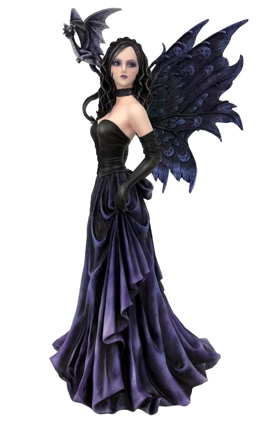 Très belle figurine d’une fée gothique habillée d’une longue jupe violette et d’un corset noir