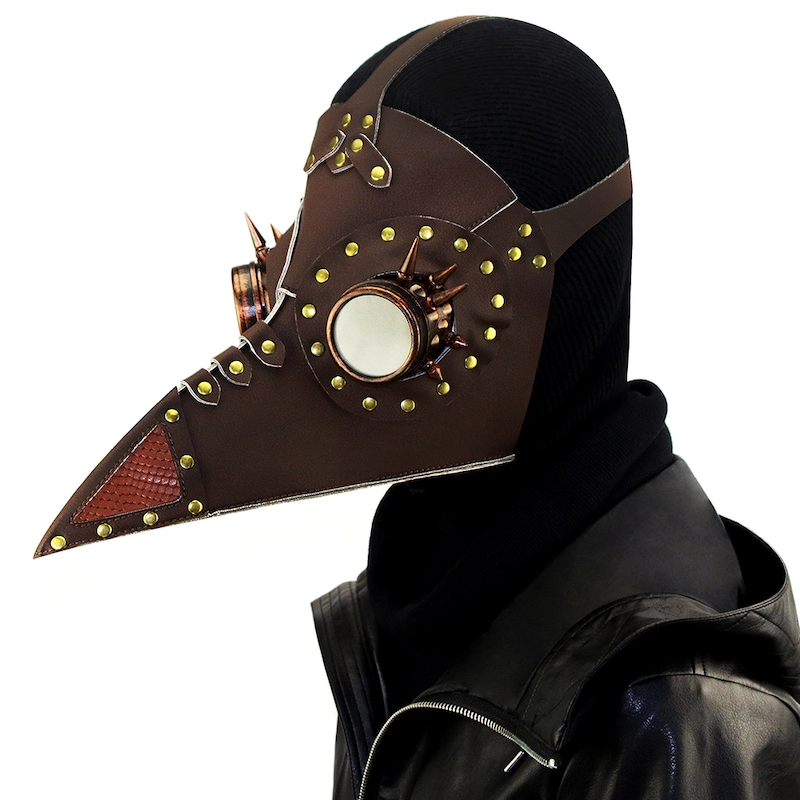 Masque steampunk “docteur de la Peste” en simili cuir marron de grande qualité