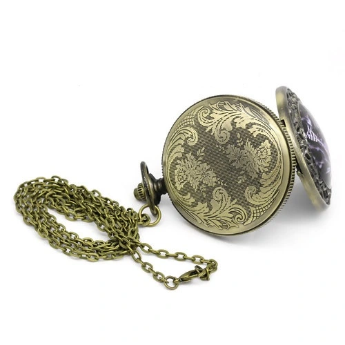 Surprenant mélange pour cette montre à gousset couleur cuivre antique, avec the reaper sur la face avant. Mouvements à quartz comme une montre traditionnelle