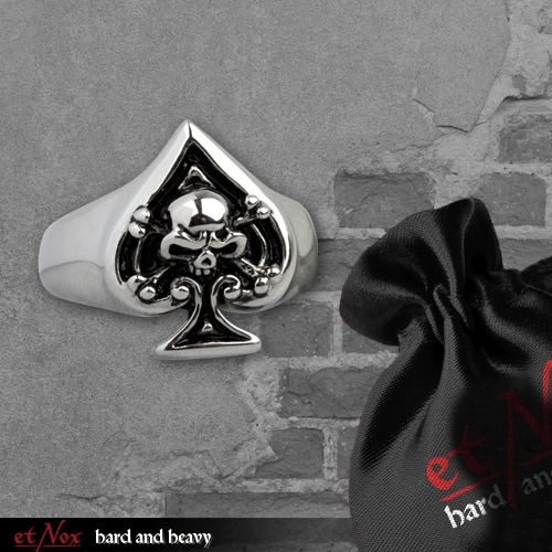 Bague gothique en forme d’as de pique surmonté d’un skull terrifiant !