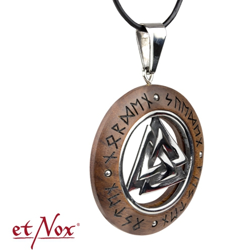 Motif à l’intérieur : noeud de Wotan en acier inoxydable, le valknut est une figure composée de 3 triangles entrelacés.Il est lié au dieu Odin évooquant la vaillance etla mort (libération de l’âme)