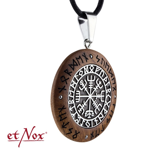 Motif à l’intérieur : vegvisir en acier inoxydable, le vegvisir est la boussole viking, elle est composée de 8 branches entourée de runes viking