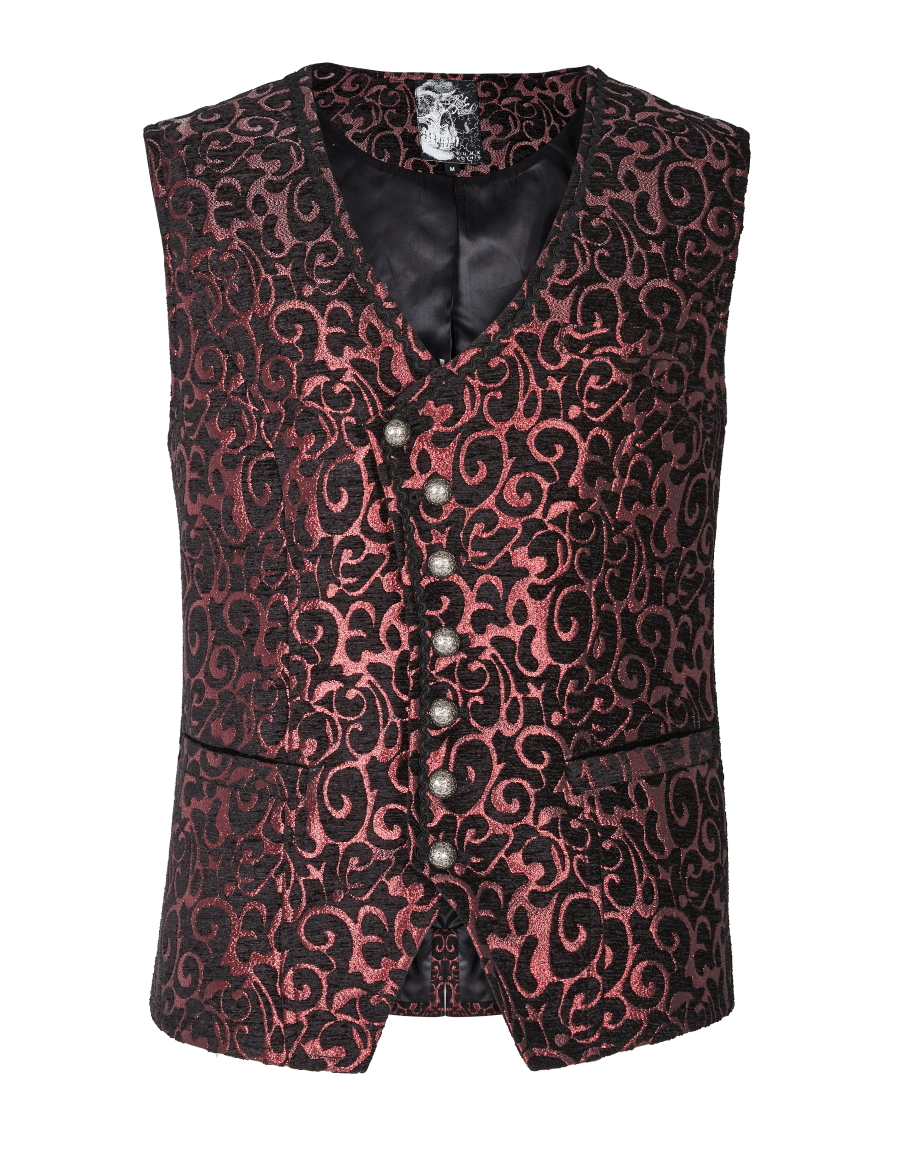 il est décliné dans un magnifique tissu jacquard noir et rouge