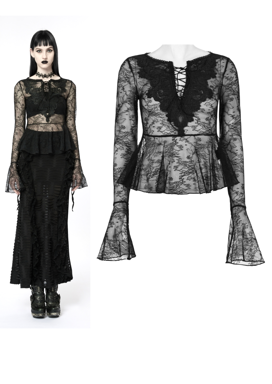 Ce haut est tout en transparence, sur les photos le mannequin porte une brassière en-dessous