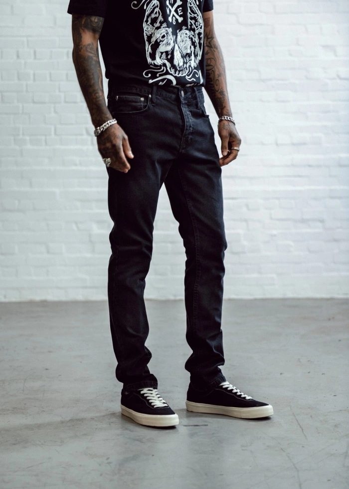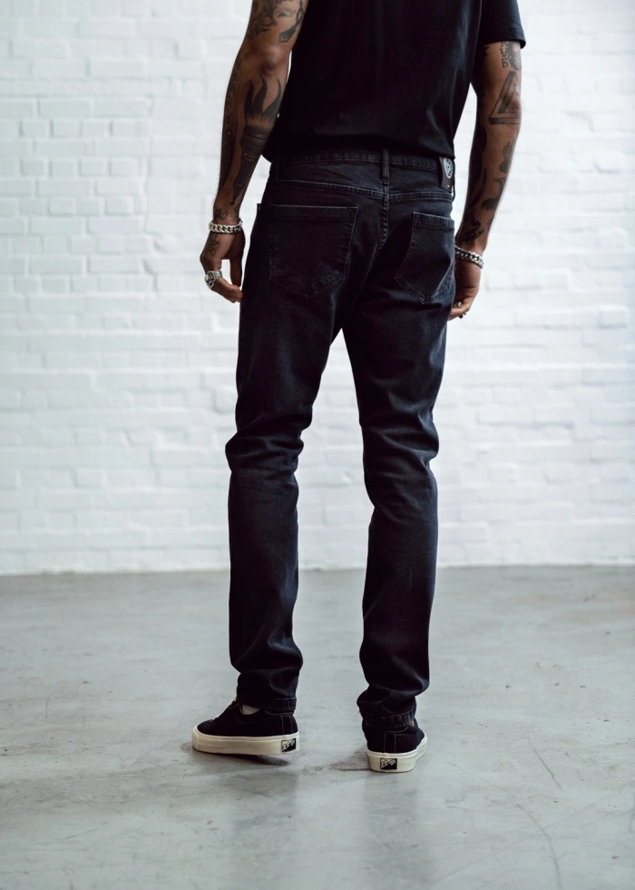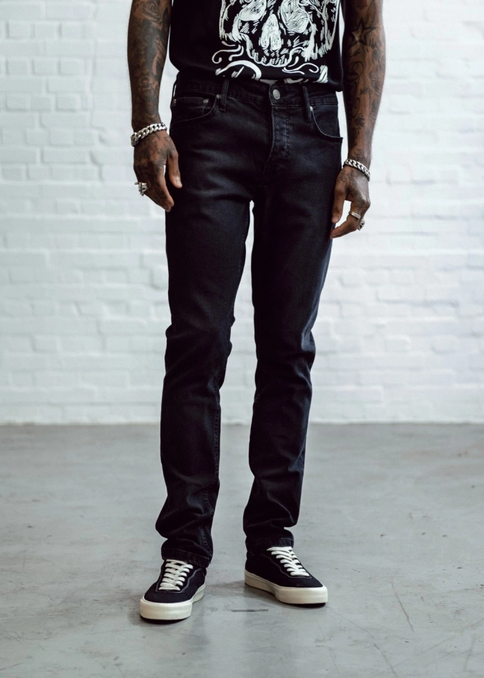 Ce jean sobre et classique est fabriqué à partir de denim résistant qui a été lavé pour donner un aspect usé