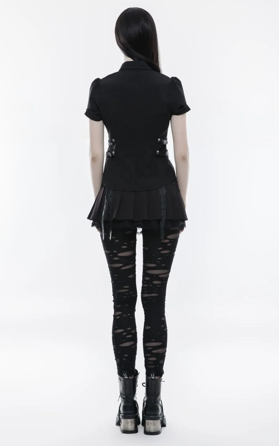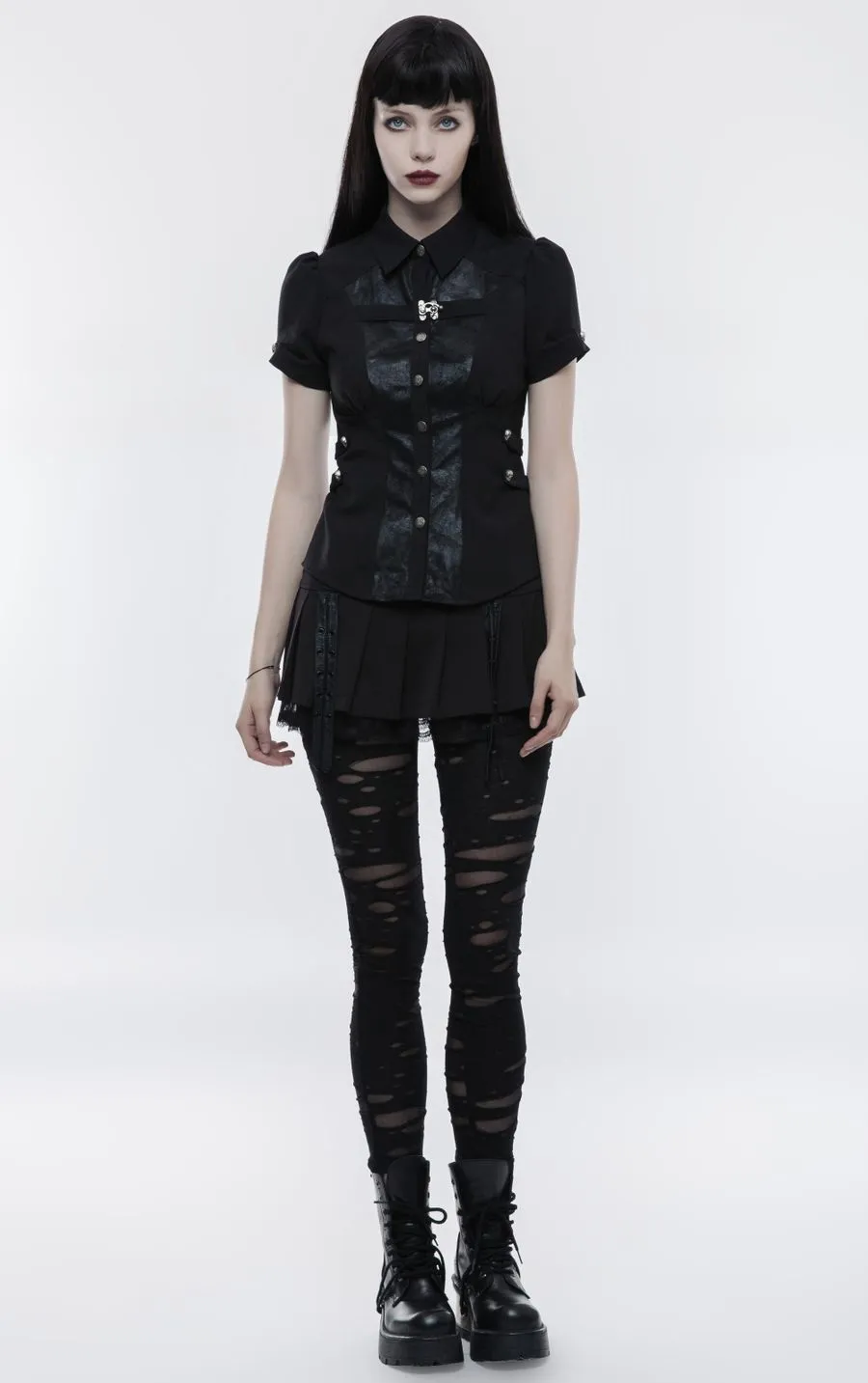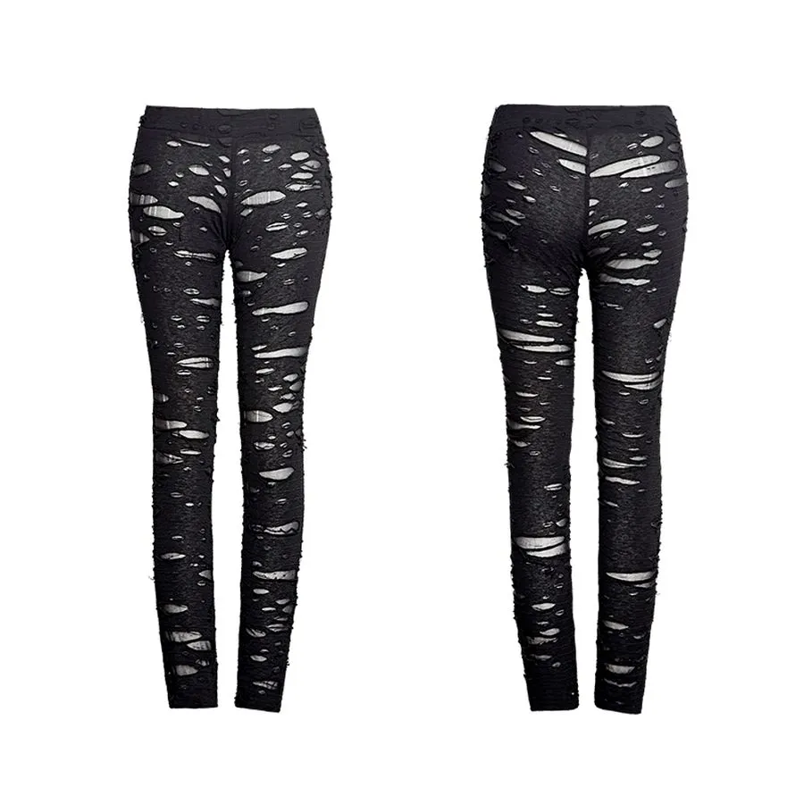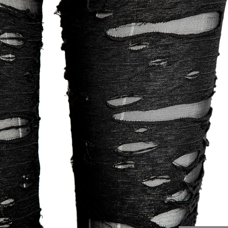 Leggings goth rock au style destroy avec ses effets déchirés, il possède du tulle très fin sous les déchirures pour ne pas avoir la peau directement à l’air, le confort en est ainsi grandement renforcé