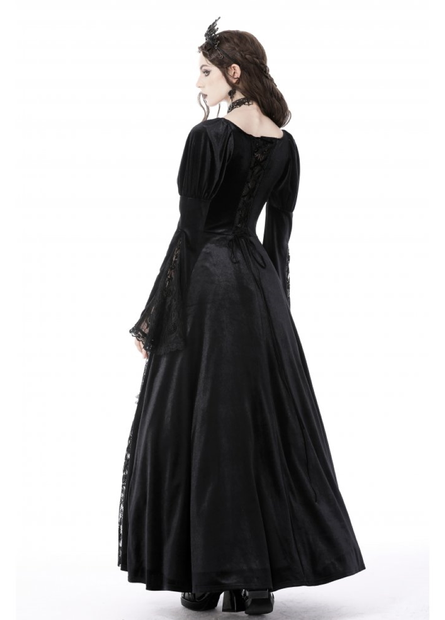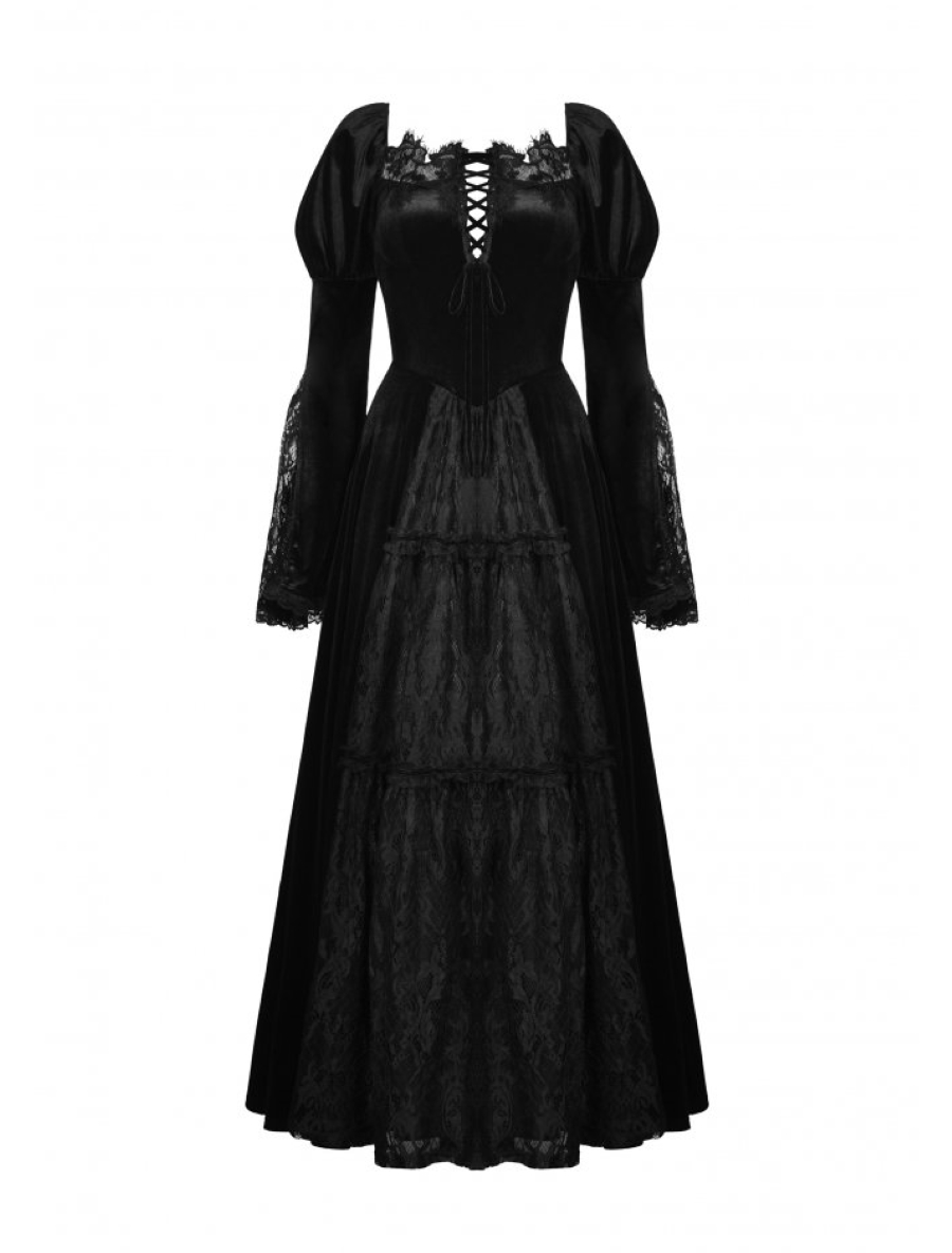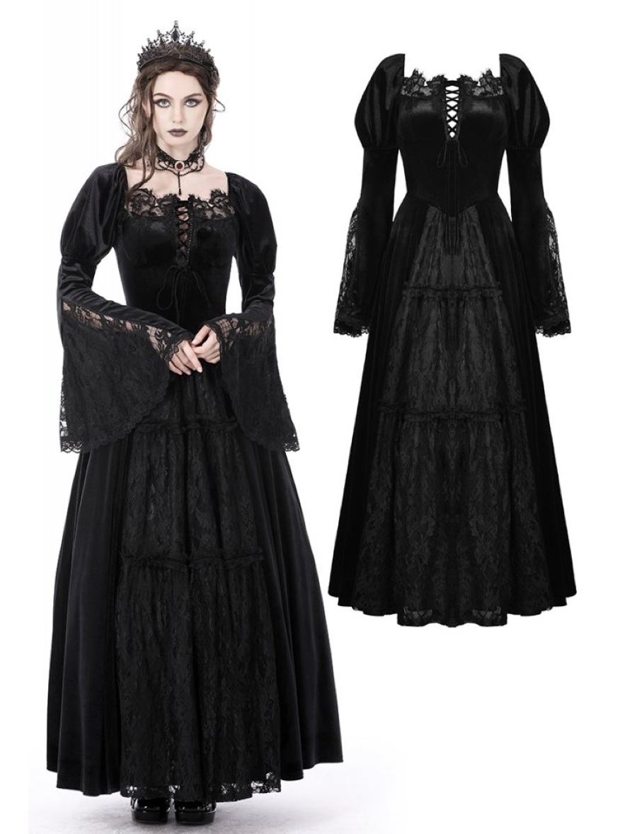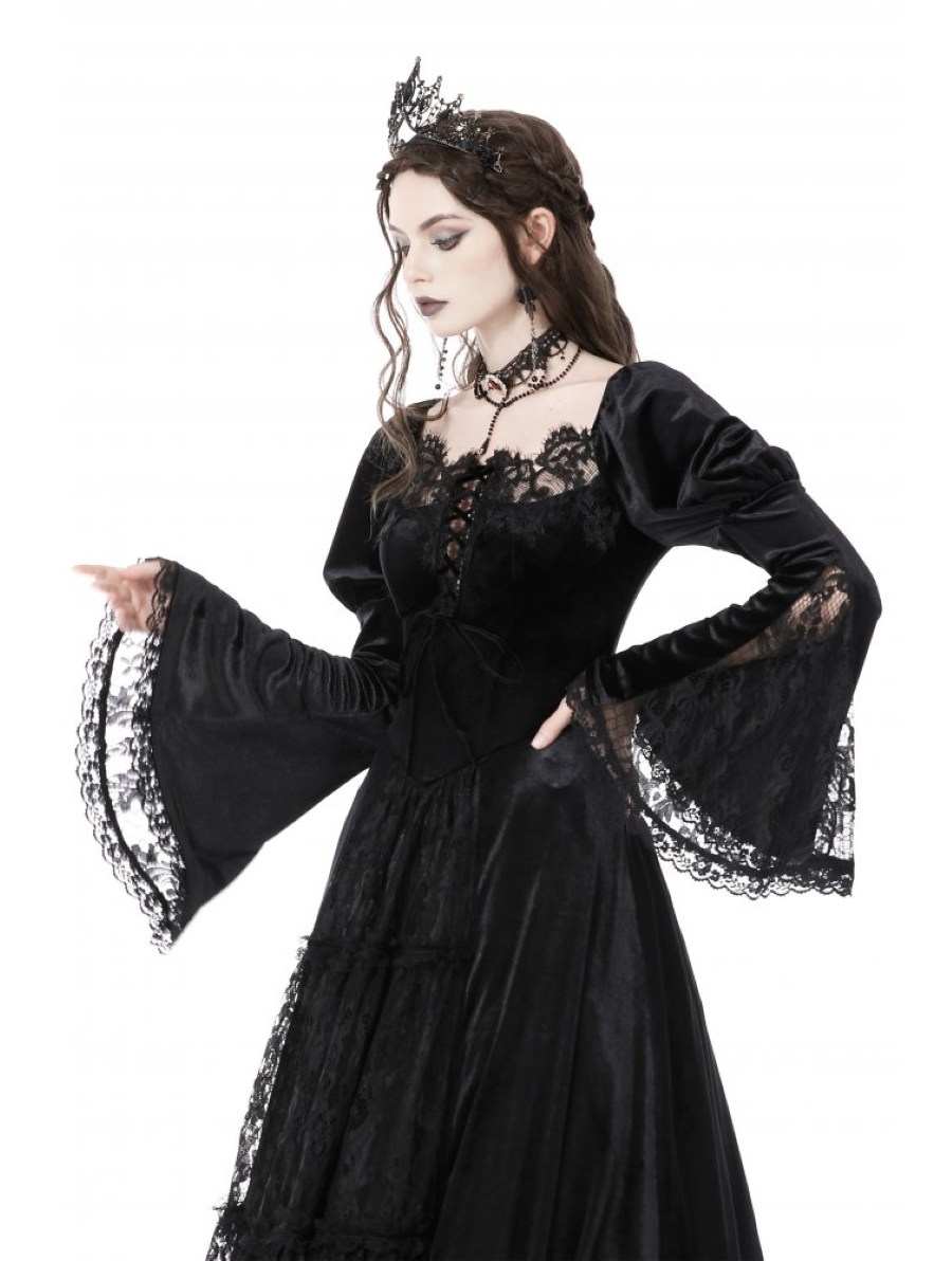Longue robe gothique victorienne impératrice, noire à manches longues, signée Dark In Love