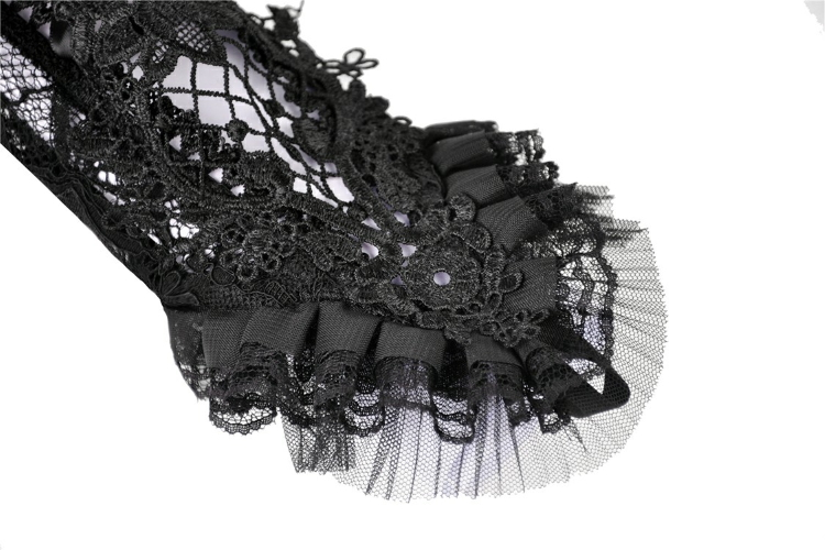 Ces longues mitaines signées Dark In Love remontent au-dessus du coude