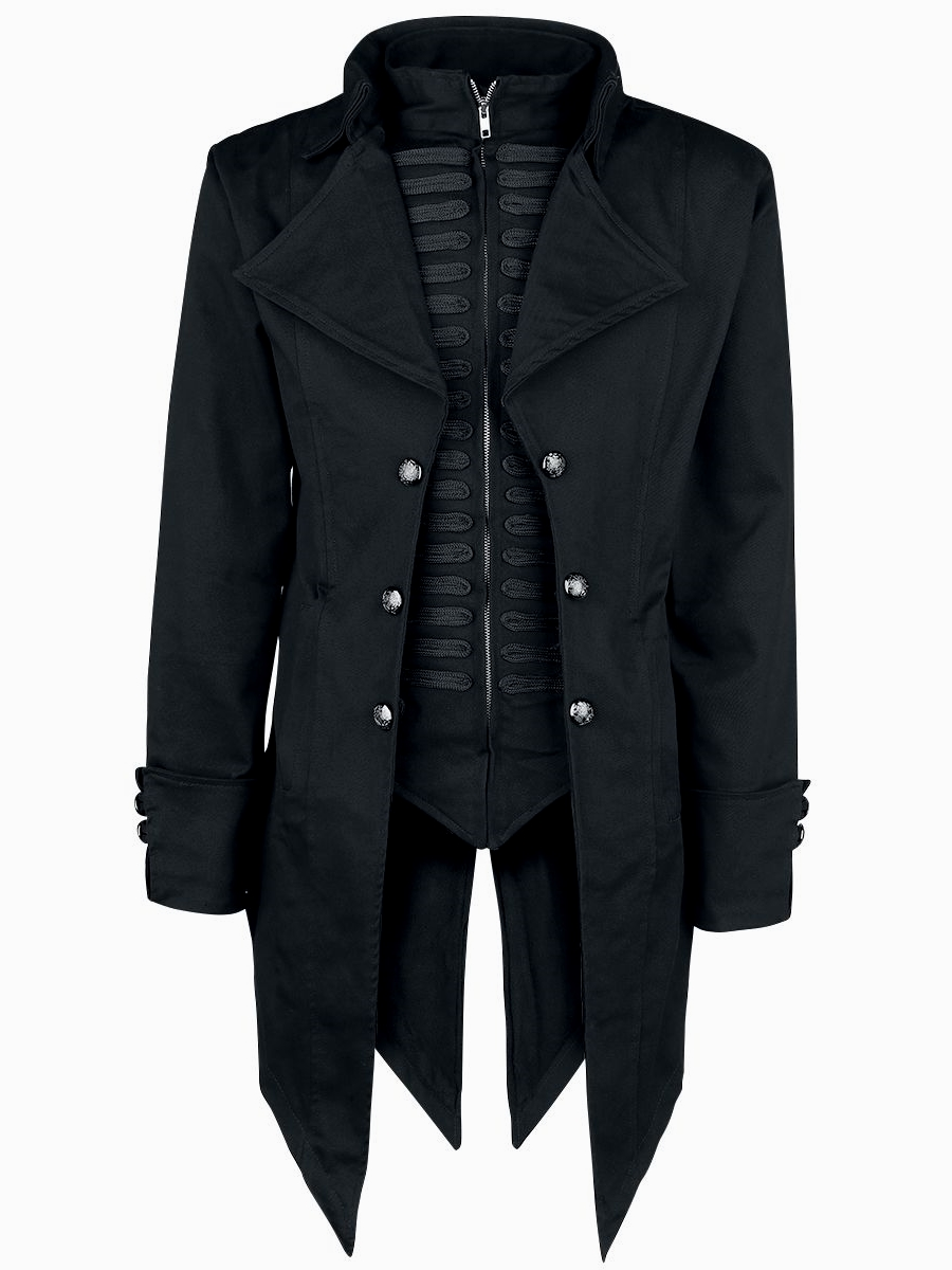 Un manteau goth 3/4 de grande classe, il a un effet 2 en 1 donnant l’impression de 2 vestes superposées, sa coupe en pointe lui apporte un style bien original