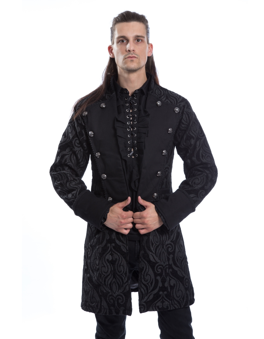 A mi-chemin entre veste et manteau le modèle ‘Monarch’ signé Poizen Industries plaira à tous ceux qui aiment le style gothique victorien royaliste de grande classe