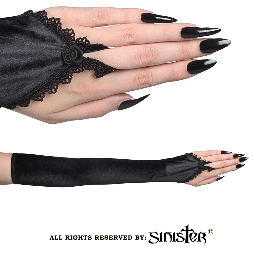 Les longues mitaines sont indispensables pour un pur look goth, Sinister est la marque référence pour la gente féminine amoureuse du black style