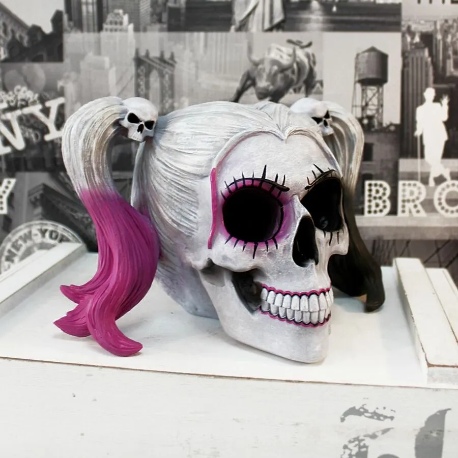Sensationnel crâne féminin par Nemesis Now à l’effigie de la fameuse Harley Quinn