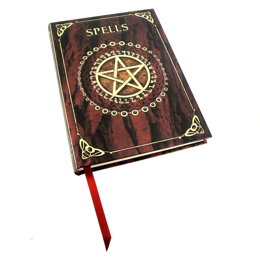 Beau journal intime avec couverture rigide décorée d’un pentagramme gravé et du titre ‘spells’, il possède une centaine de pages dans un très beau papier style parchemin.