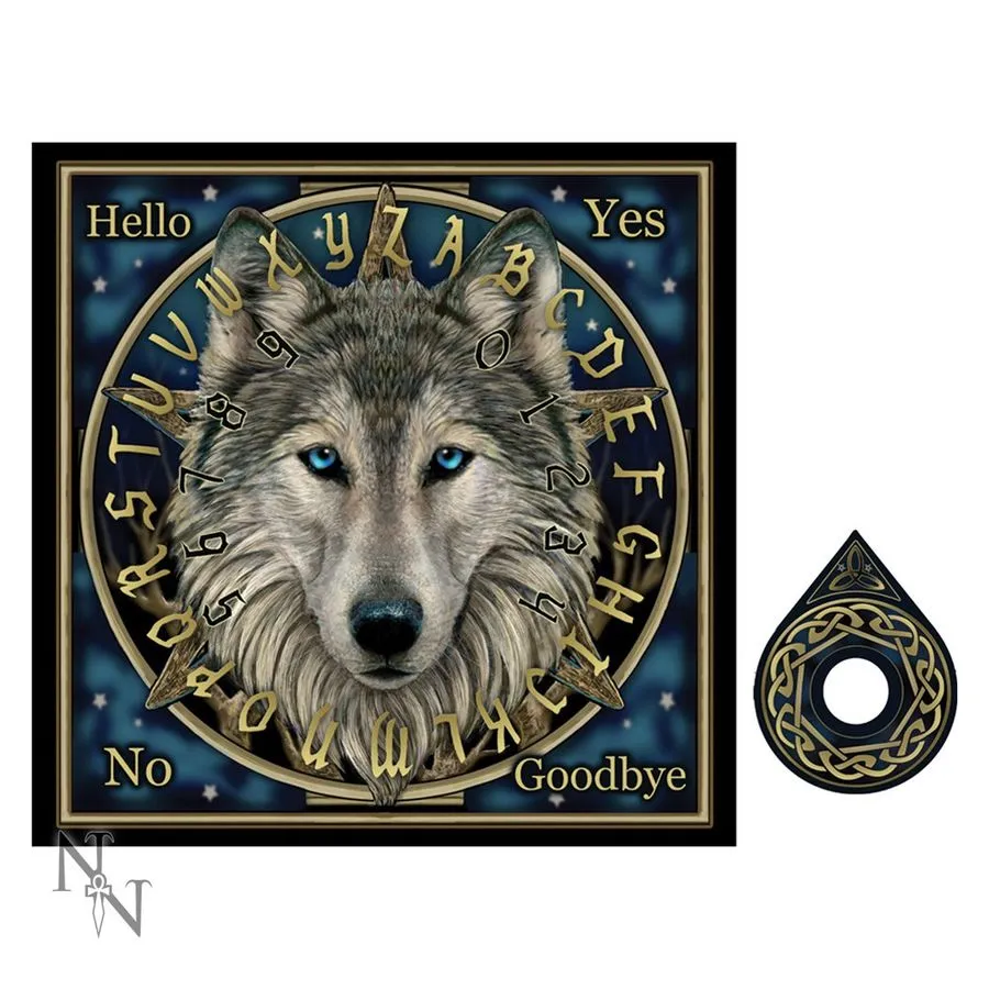 Belle planche ouija avec une sérigraphie de loup, cette planche de 36 cm x, 36 cm est peinte à la main