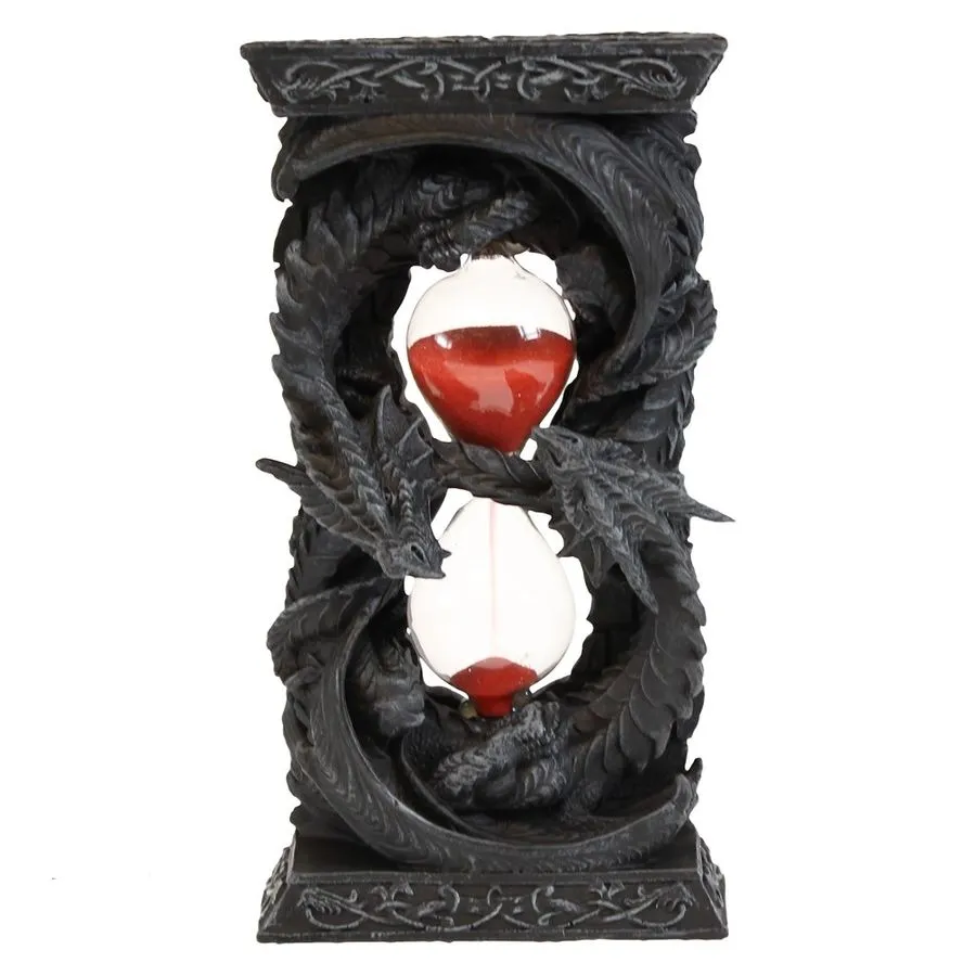 Inexorablement le temps s’écoule mais grâce à ce beau sablier gothique en résine noire, il est plus intéressant de voir s”écouler