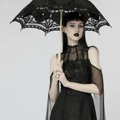 Superbe ombrelle gothique romantique en tissu coton décorée de magnifiques broderies