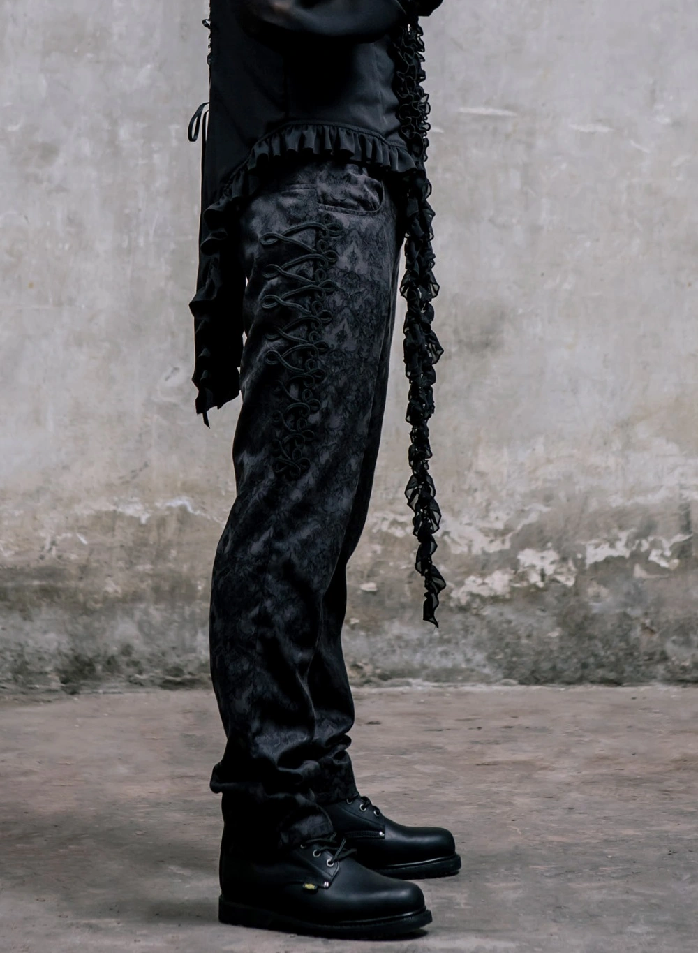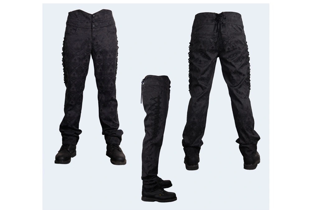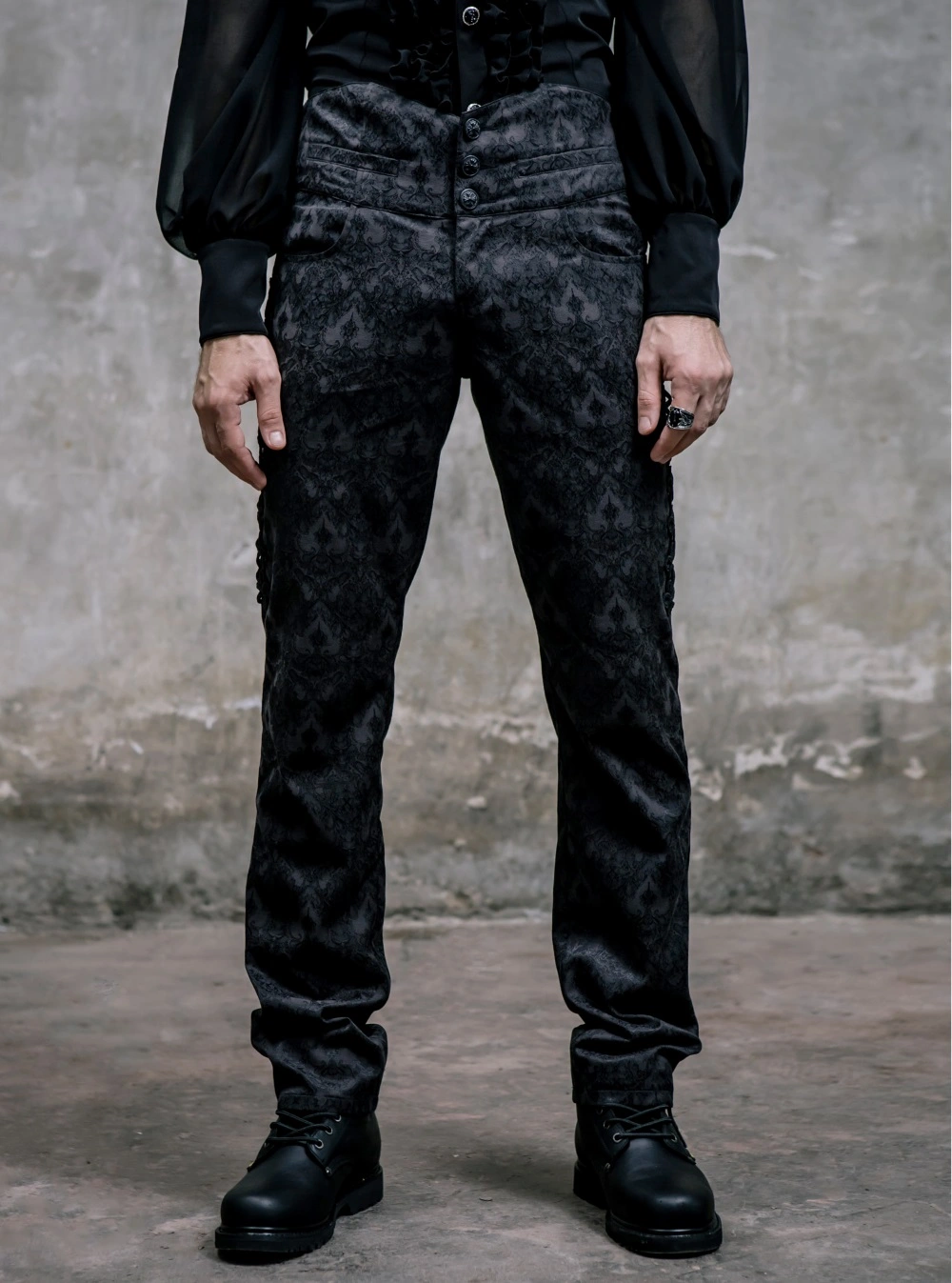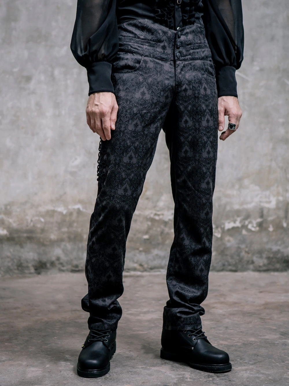 Pantalon gothique homme taille haute en tissu brocarde de très belle qualité.