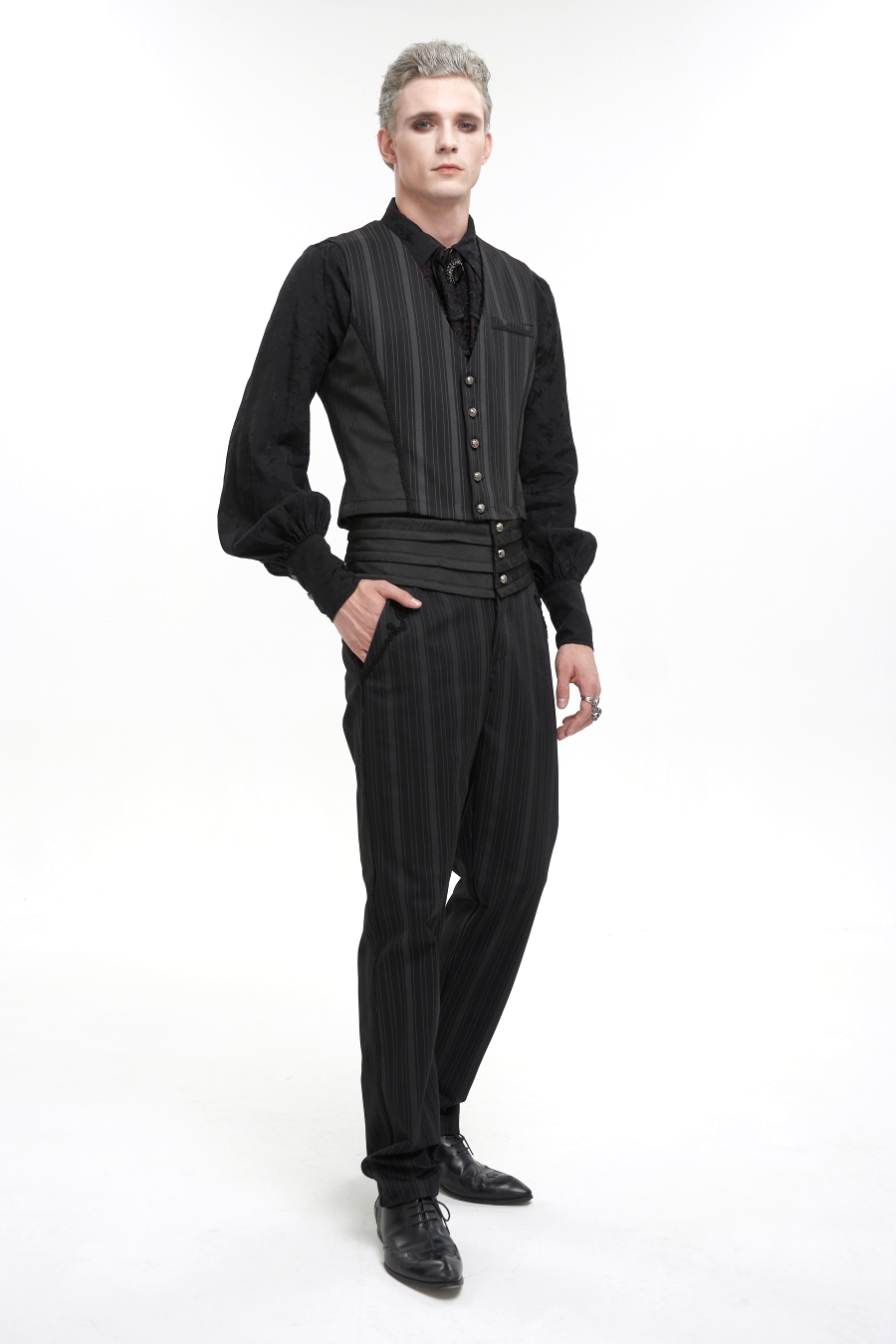 Le haut du pantalon est décliné dans un tissu noir étagé avec 3 beaux boutons de fermeture donnant l’effet d’une large ceinture