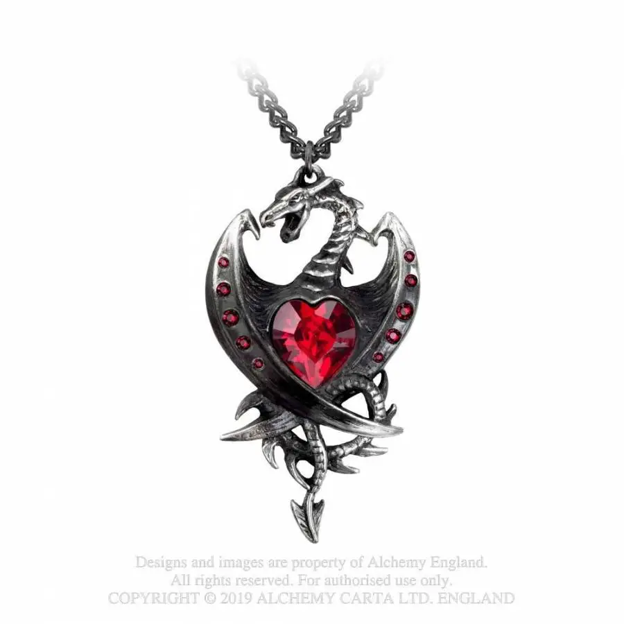 Le contraste entre le dragon noir et les cristaux rouge est saisissant et donne à ce pendentif une originalité supplémentaire