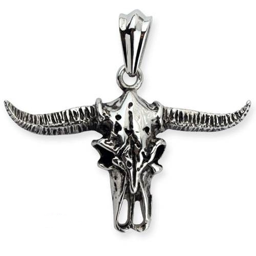 Beau pendentif en inox représentant un crâne de buffle, la finition poli miroir est superbe