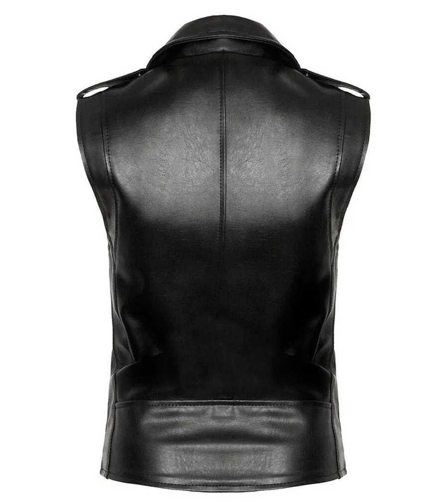 Superbe blouson sans manches de type perfecto en cuir vegan de haute qualité