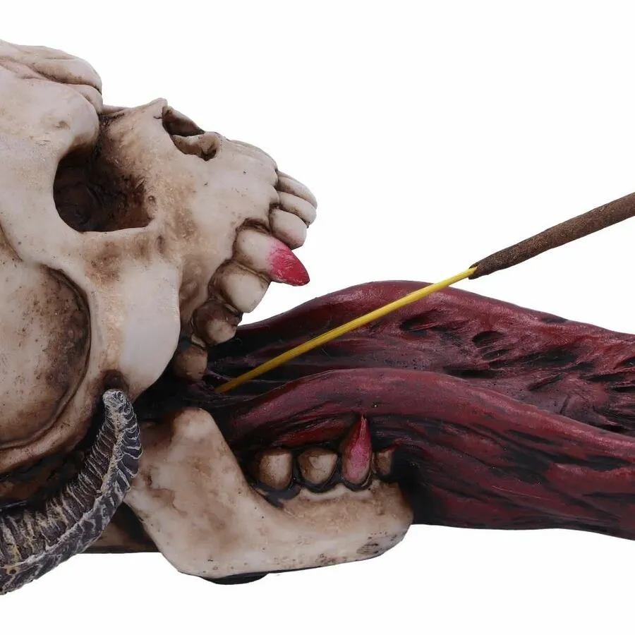 Avec une tête de 10 cm aux énormes cornes de diable, des crocs acérés recouvert de sang et une langue fourchue de 20 cm, ce porte encens ne passe pas inaperçu, Le résultat est vraiment impressionnant