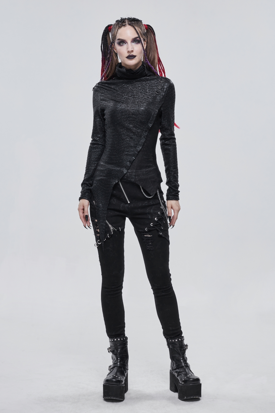 Ce pull signé Devil Fashion est fabriqué dans un tissu original à l’aspect brillant effet cote de maille