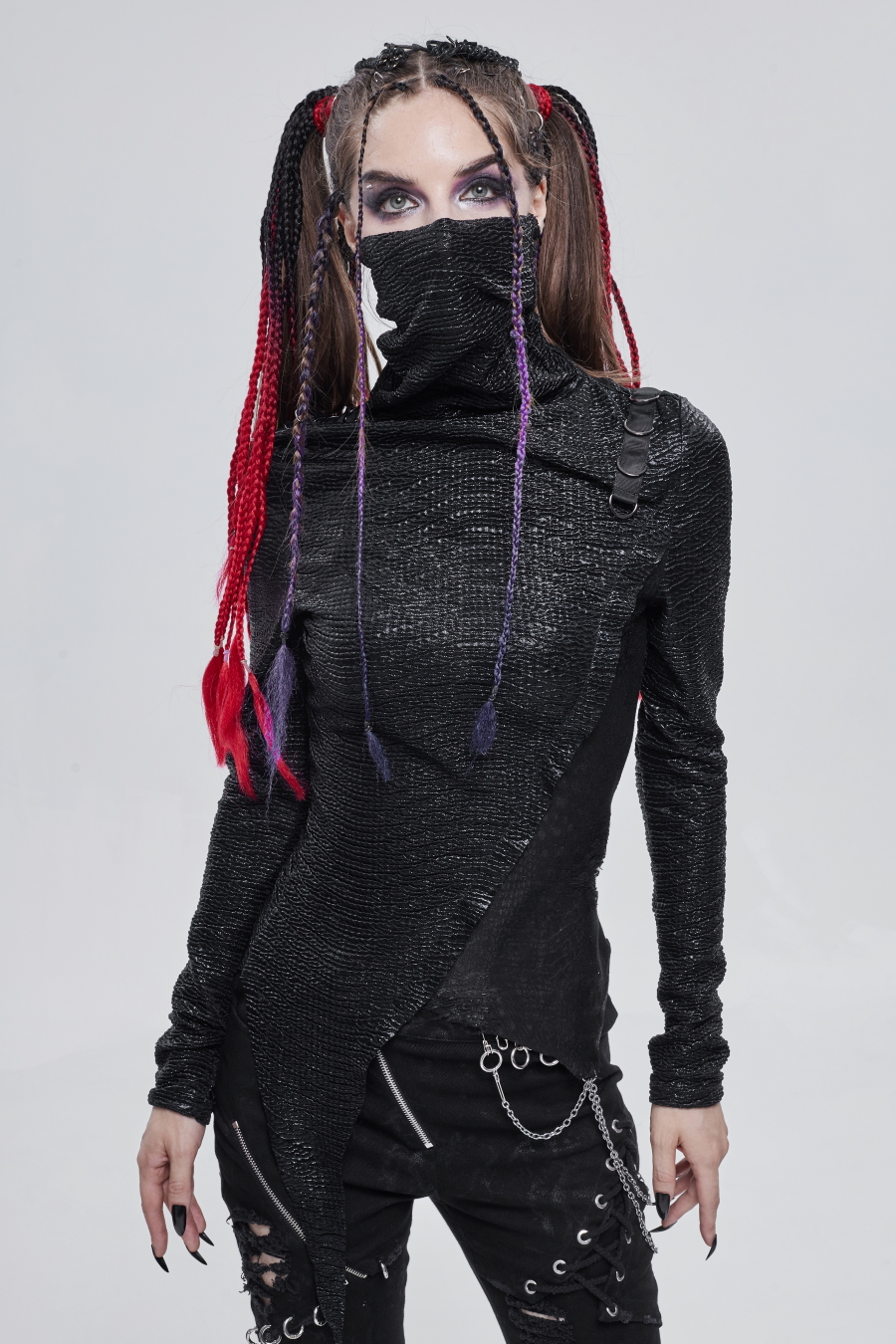 Il possède une partie de tissu en coupe asymétrique légèrement transparant avec effet déchiré